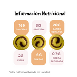 Postre saludable horneado elaborado sin lácteos ni huevos, pensado para niños desde los 12 meses. Su textura firme y sabor equilibrado lo hacen ideal como opción para niños que ya suelen tener un horario más establecido con refrigerios y necesitan de algo más consistente para tener energía a lo largo del día. Una alternativa práctica y nutritiva sin azúcar añadida ni insumos animales para disfrutar con tranquilidad.